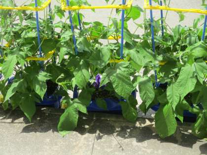 本日、34あるプランターの中から1つアサガオが咲きました。第1号です。これからどんどん花を咲かせるものと思われます。