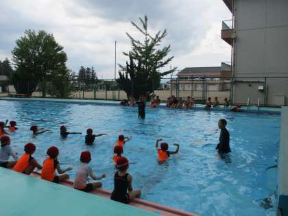 水の中でジャンプしたり、走ったり、泳いだりと自分ができることをしっかり行い、楽しんで学習していました。