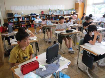 「いちばん言いたいことを見出しにまとめること」や「事実を正しく書くこと」「誰が見ても分かるように、難しい言葉には、説明を付けて書くこと」など、子どもたちは、記事を書くのに気を付けることについて学習していました。