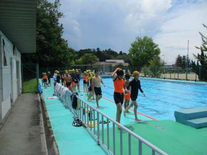 しかし、途中に雷が鳴ってしまったため、水泳を切り上げ、授業を中止しました楽しく学習していただけに残念でした。