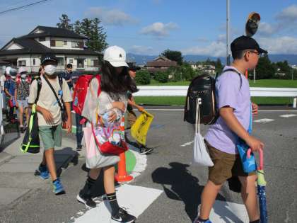 今朝も子どもたちは、班長さんに連れられて、元気に登校して来ました。