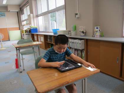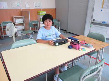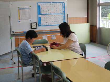 あおぞら教室では、子どもたちがそれぞれタブレットを使って学習をしていました。