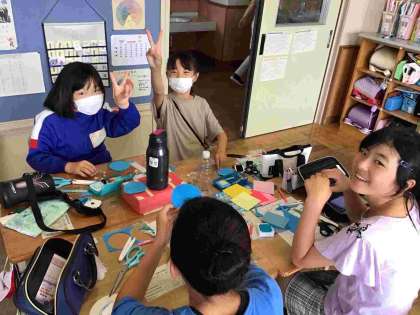 昨日の3・4時間目に家庭科の授業でコースターを作りました。フェルトを裁ちばさみで切ったり、自分の名前やイニシャル、模様などをぬいとりしたりしながら作りました。