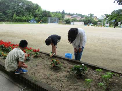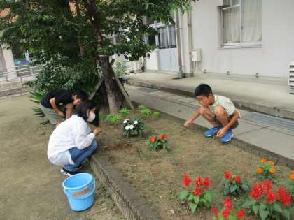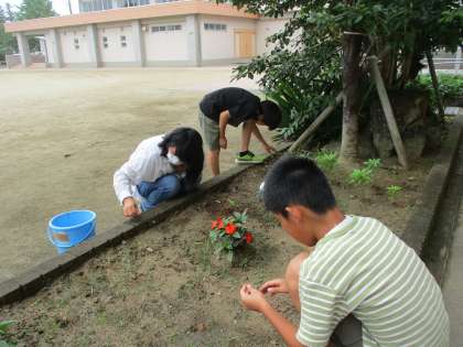 今朝も美化委員会の子どもたちが、花壇の草むしりをしていました。