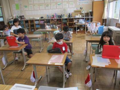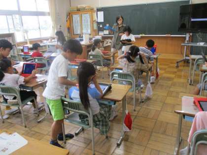 タブレット間でデータの送受信を確認しました。(2年2組)