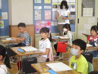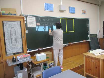 めあてを書き終え、本時のねらいである図形を弁別する活動へと入っていきました。