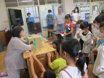 三角形や四角形を子どもたちが本当に理解したのかを確かめるために先生がブラックボックスを用意していました。