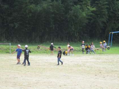 秋晴れとなり、業間の時間は、校庭で遊びました。