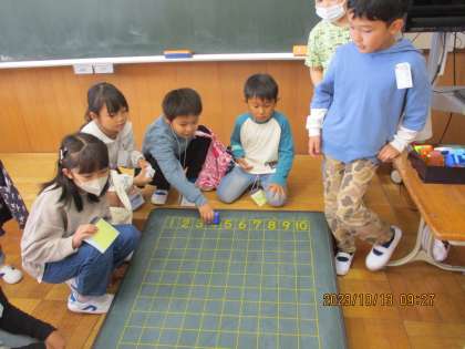 2年生は1年生が来ると優しく遊び方を教えていました。