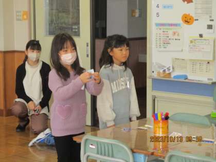 2年生は、「ころころころん」「パッチンジャンプ」「とことこ車」の説明をしました。