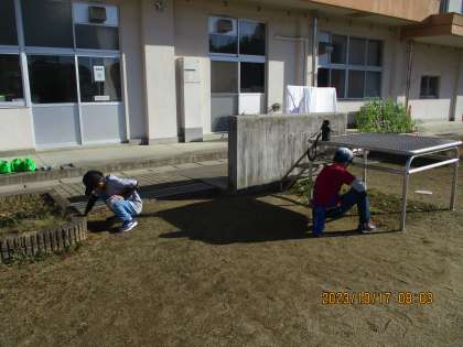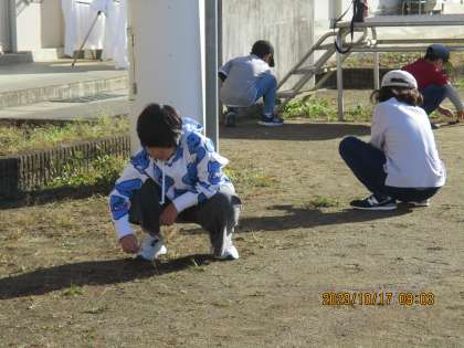 今朝も美化委員の子どもたちが、校庭の草むしりをしていました。