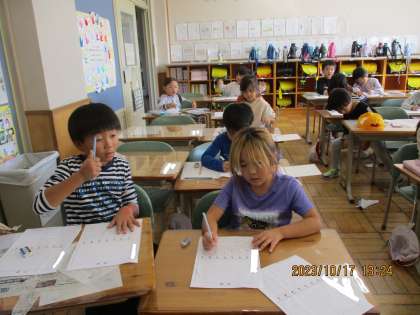 カレンダーの絵を描いたり、数字を入れたりと子どもたちは、自分の描きたい絵を考えながら、カレンダー作りを行っていました。