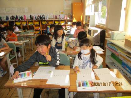 1年1組では、10月と11月のカレンダー作りをしました。