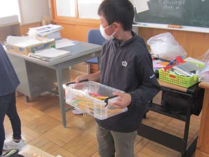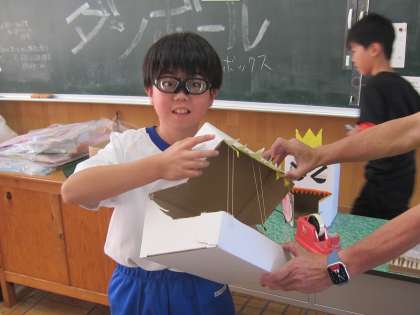 4年生は段ボールを使って工作をしていす。なにやらおもしろい「しかけ」があるようです。
