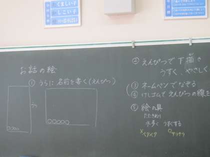 2年生は、お話の絵えを描いています。物語の世界にどっぷりとひたっていました。