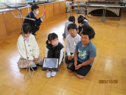 子どもたちは、グループになって「帰り道」という歌詞の表す様子を話し合い、どのように歌うとよいのかを考えていました。