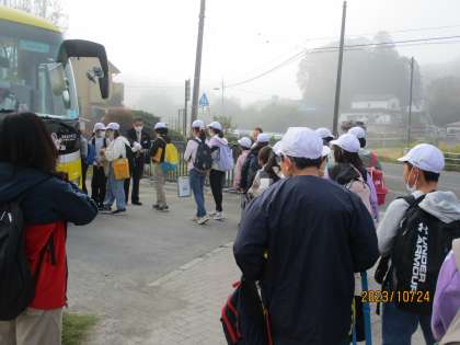 子どもたちは、運転手さんに「おはようございます。」のあいさつをして、運転手さんからアルコールを手に吹きかけてもらってからバスに乗りました。