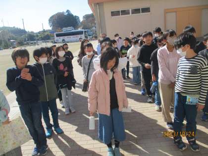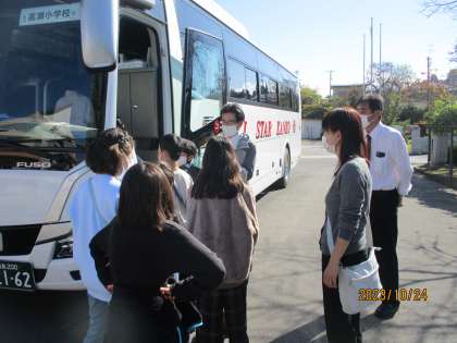 校長先生に元気よく「行って来ます」のあいさつをして、バスに乗りました。