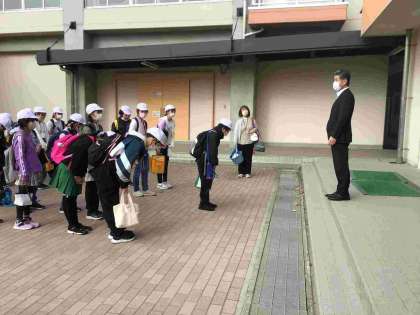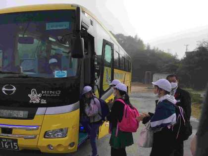 写真は今日の見学学習の出発の様子です。コミュタン福島とデンソー福島に見学学習にバスで向かいました。
