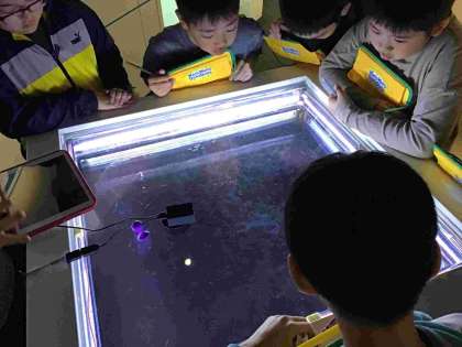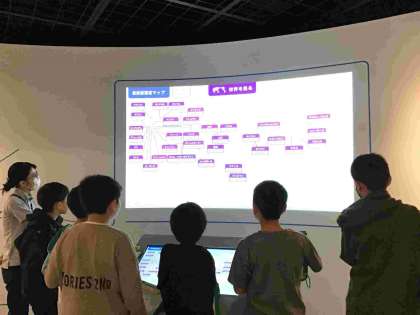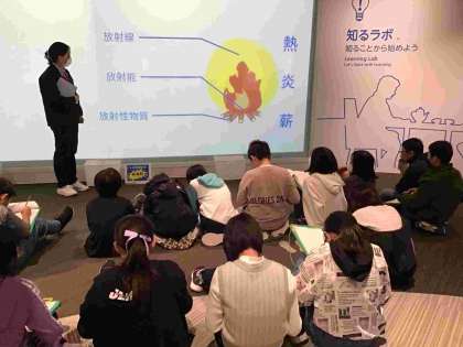放射線やその種類について理解を深めました。写真3枚目の「霧箱」という機材は放射線が通った後の軌跡を霧のおかげで見ることができます。アルファ線やベータ線、宇宙線などの放射線を観測することができました。子どもたちは「まっすぐできれいな宇宙線見付けた!」「大きなアルファ線があった。」と放射線を確認することができました。