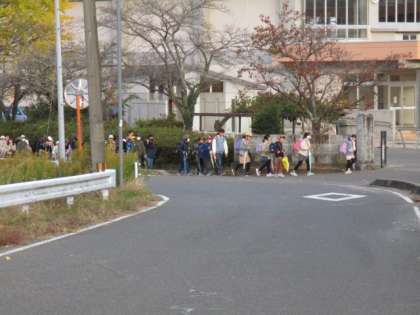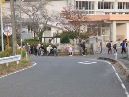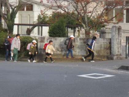 今朝も班長さんを先頭に一列になって登校していました。良好です。