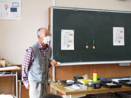 昨日の3・4校時に1年生は図工室で、もりの案内人のお2人の方を講師として、クマのキーホルダー作りを教えていただきました。