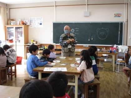 もりの案内人の方々は、子どもたちに作り方を丁寧にお話してくださいました。
