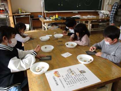 もりの案内人の方が、すべての材料と道具を準備してくださり、子どもたちは、材料をいただいて、作業に取りかかりました。
