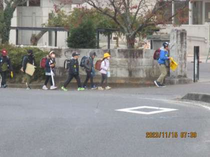 今朝も寒い朝を迎えましたが、子どもたちはいつものように班長さんを先頭に一列になって安全に登校して来ました。