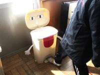 5年生が図工で「みんなを楽しませる工夫」を考え、教室を飾りました。ゴミ箱を開ける...