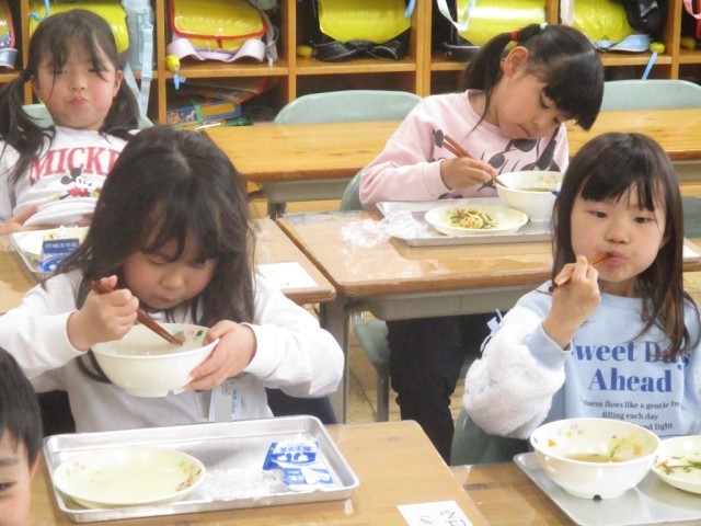 今日から給食がスタートしました。楽しみにしていた給食。みんなもりもり食べました。...