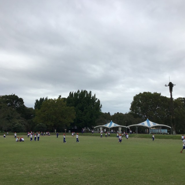 広場で遊んだり、お弁当を食べたりしている様子です。