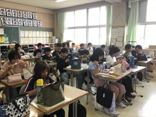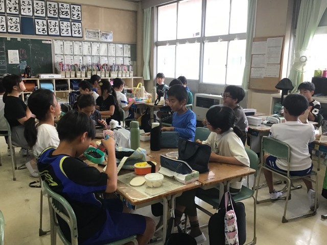 昨日はお弁当の日でした。4時間目が終わりに近づくと時計を見ることが多くなり、待ちきれない様子の子どもたちでした。