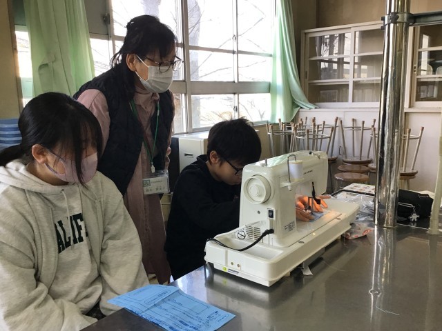 家庭科のソーイングでは、地域のボランティアの方々にお世話になっています。一つ一つ丁寧にサポートしていただいて、大変助かっています。子どもたちも来てくださる日を楽しみにしているようで、「次はいつ来るのかな」と心待ちにしている様子です。2月もどうぞよろしくお願いいたします。