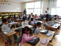 今日は、シャトルランを6年生と一緒に行いました。リズムに合わせて体育館を往復しました。6年生の励ましを受けながら精一杯頑張っていました。