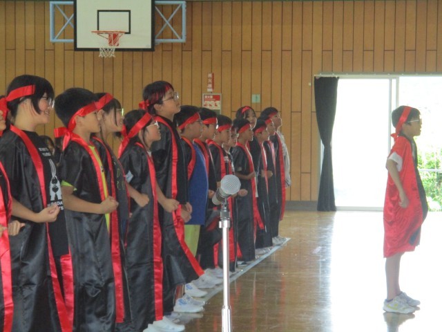 応援団の5年生のリードのもと、フレフレコールが体育館に響きました。