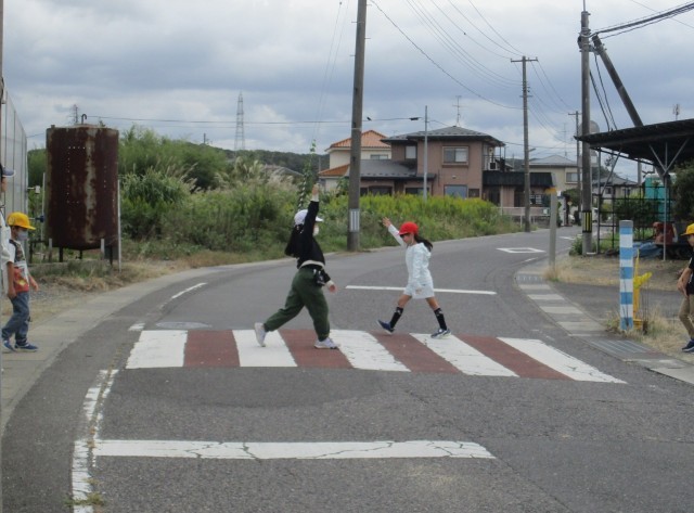 左右確認と手をあげることをしっかり身に付け、上手に歩行練習ができました。