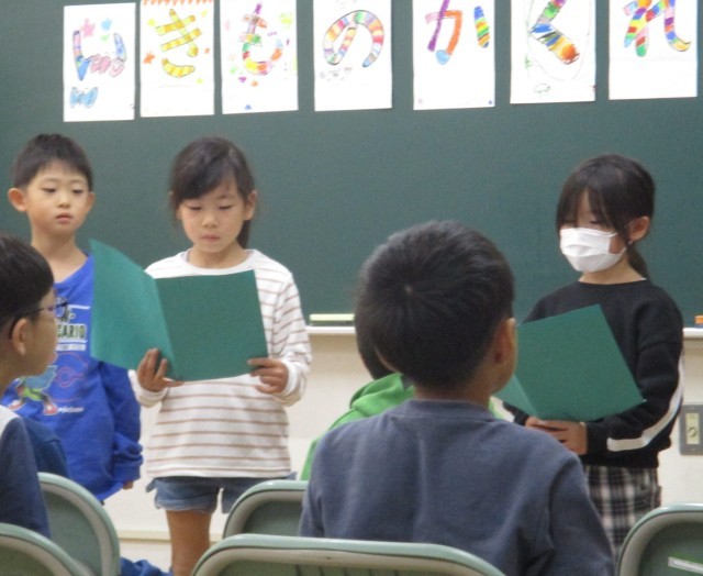 生き物たちのすみかについて調べたことを発表。