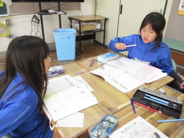 進行役の子がそれぞれの意見を聞き、話し合いをまとめます。