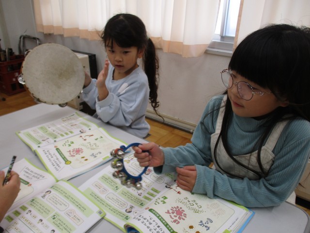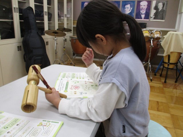 はじめて出会う楽器に興味深々の姿も。