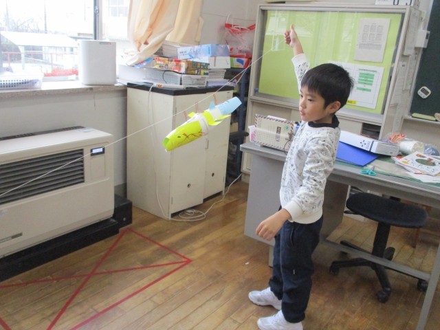 最後にクリップ滑車をつけると…。上から下へビューン。