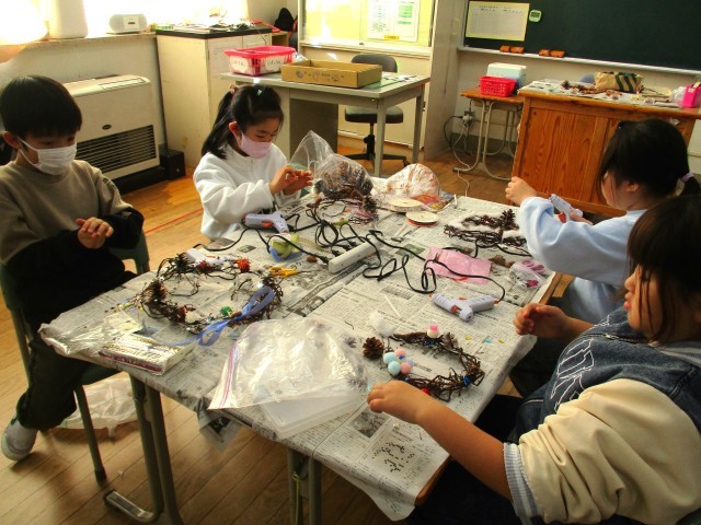 リースづくりで気持ちも高まります。