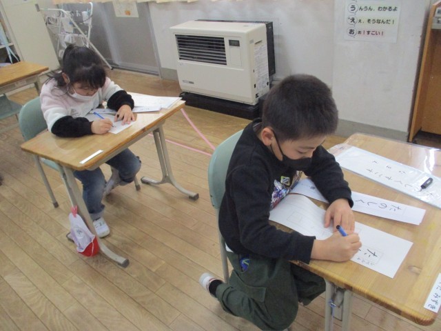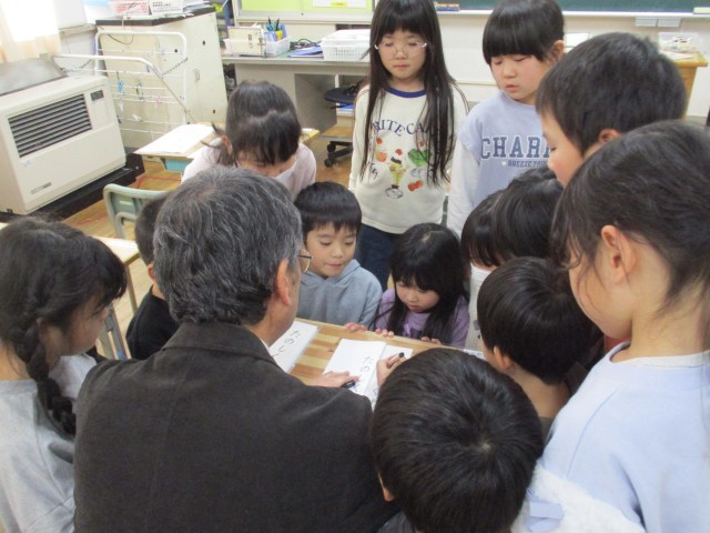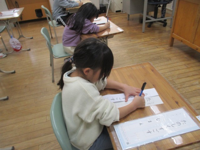 講師の先生に来ていただき、1年生は硬筆での書き初め指導。