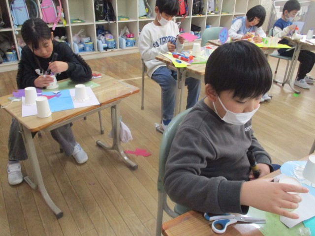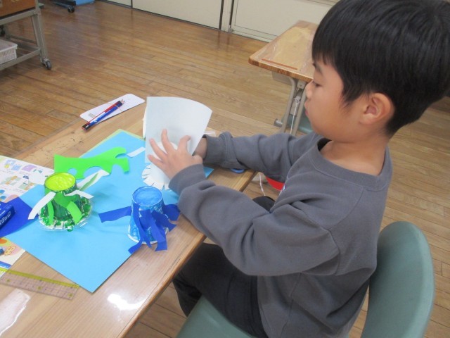 紙コップが飛び出す仕組みを生かして作品づくり。