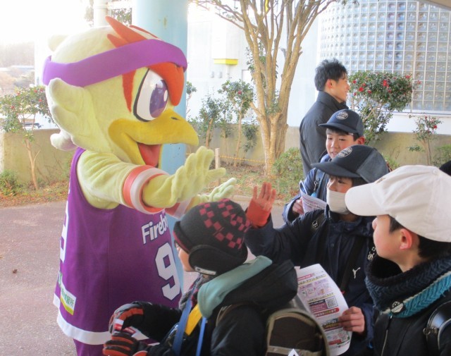ボンズくんが子どもたちに元気なあいさつを届けに来てくださいました。