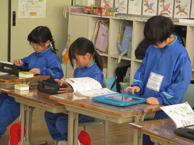 色板を組み合わせて、ダイヤ形やロケット型、家形など、いろいろな形をつくります。