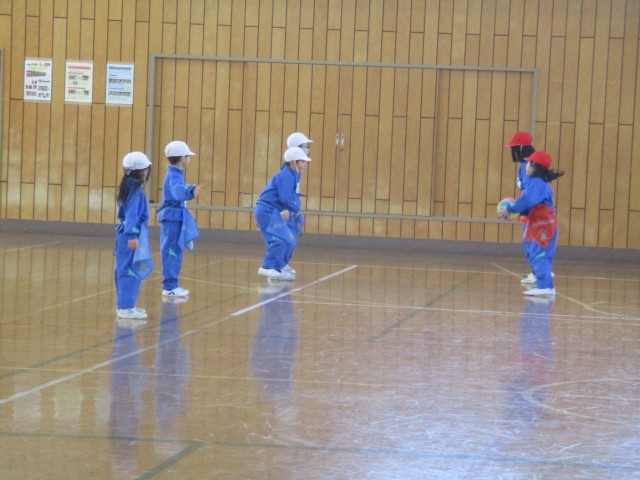 練習の成果を生かして、赤白に分かれての試合です。