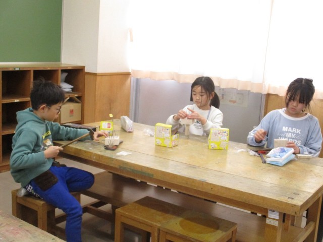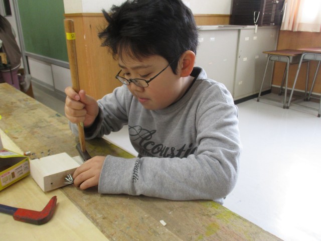 くぎの使い方の工夫で、猫やうさぎ、象など、いろいろな生き物に大変身です。