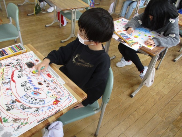 書きたいものだらけで、画用紙がいっぱいです。