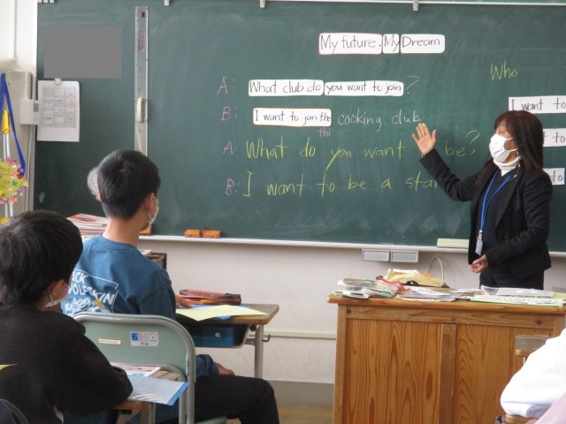 中学校の生活を想定しての英会話。
